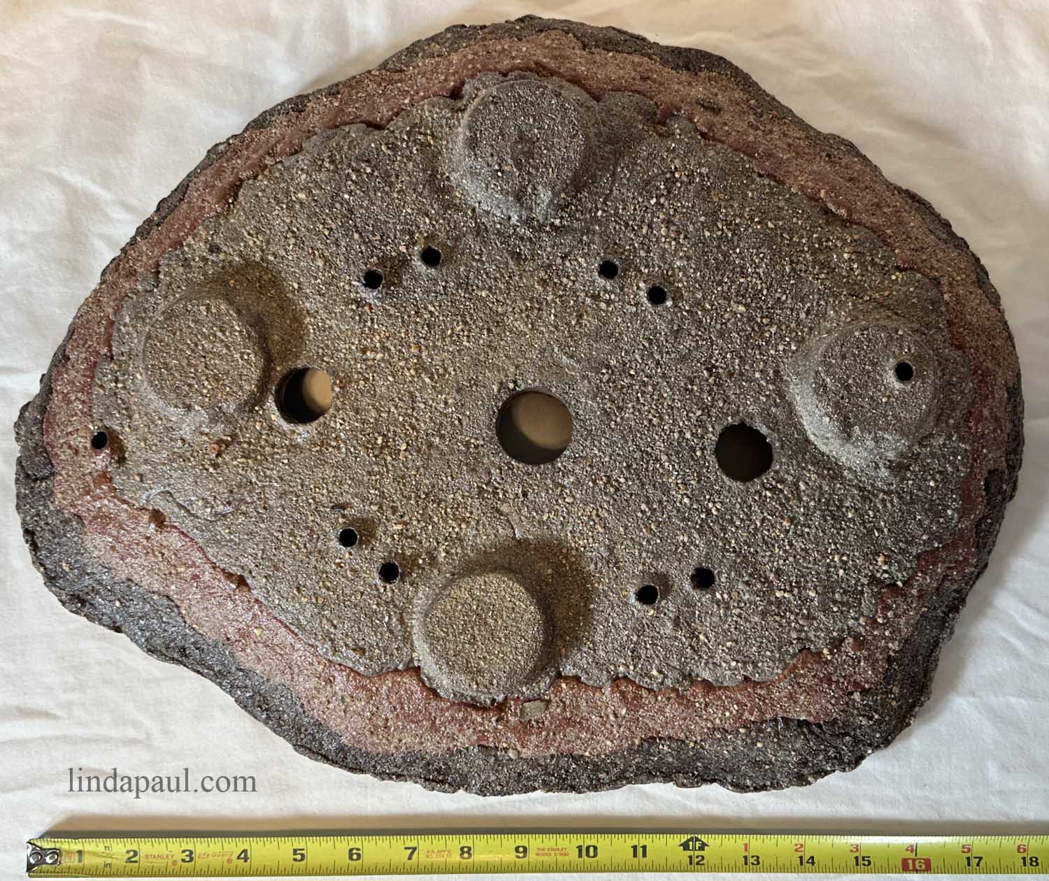 One of a kind handmade solid concrete slab by artist Linda Paul.