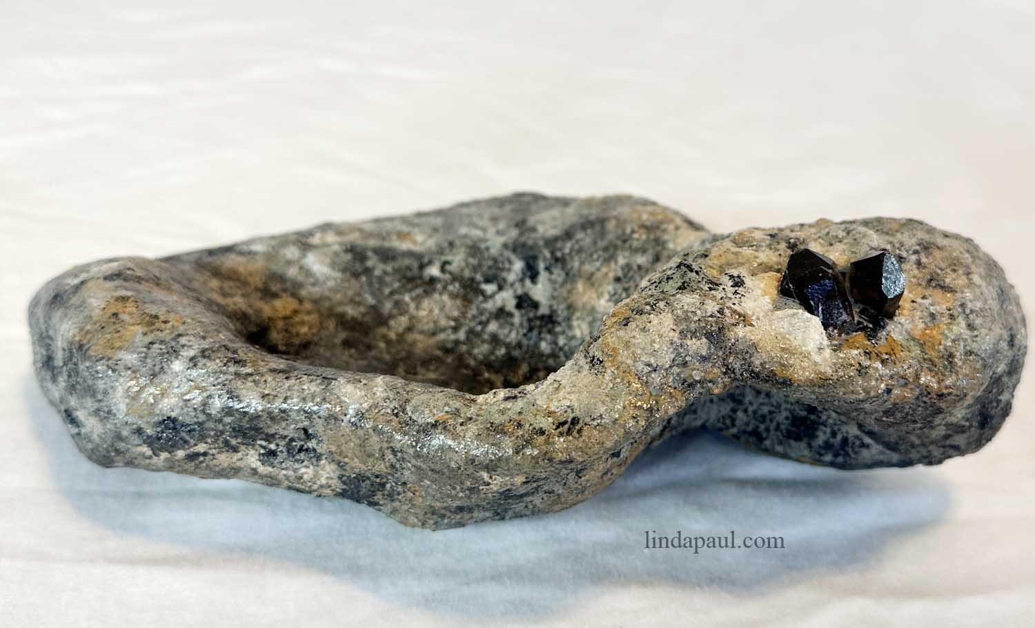 "Jewels in the Rock" Smoky quartz accent in granite look kusamono bonsai pot - Freeform, Handmade by artist Linda Paul