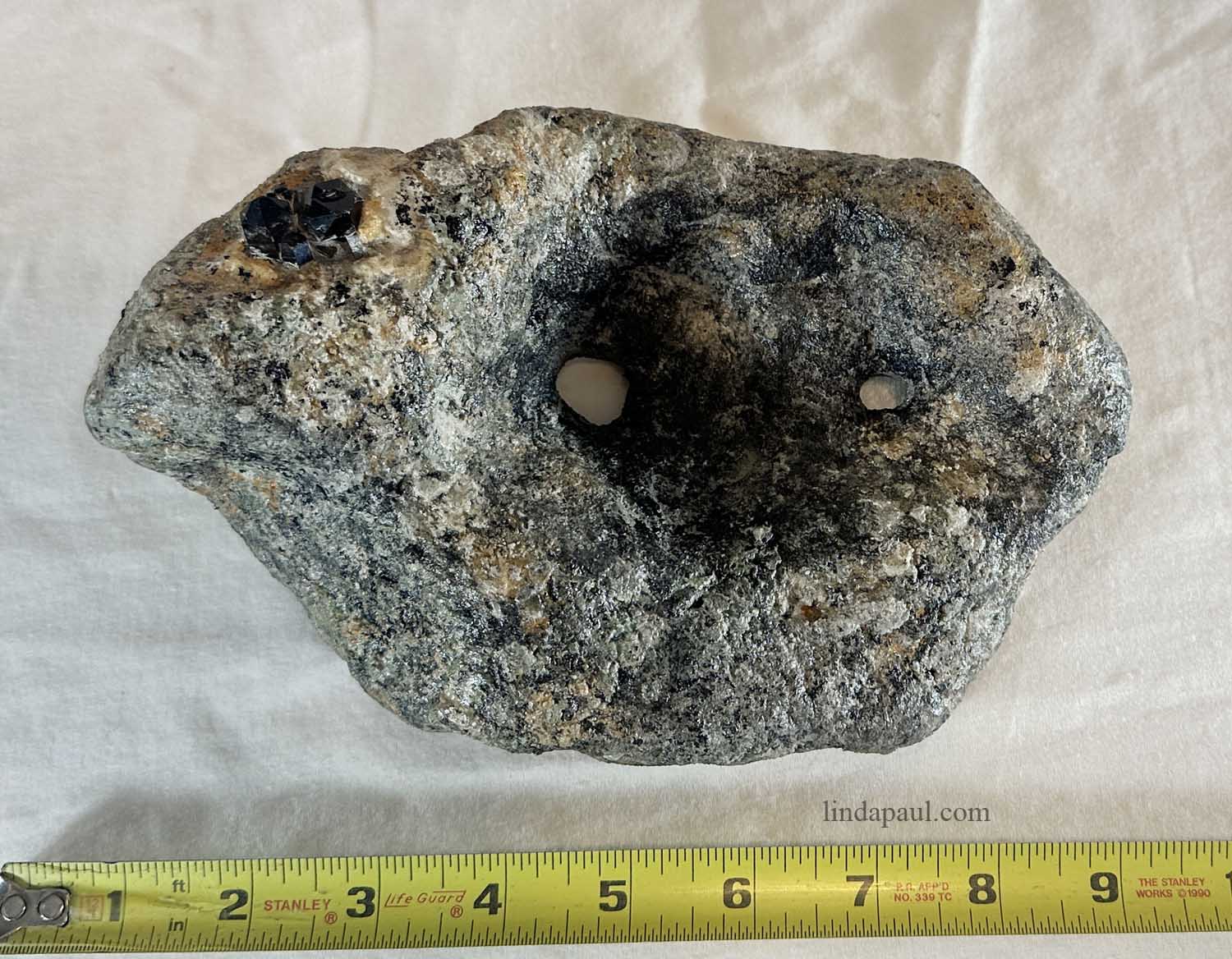 Color: Colorado granite, grey, black, white, lichen green and lichen orange,  and black Smoky quartz crystal.
