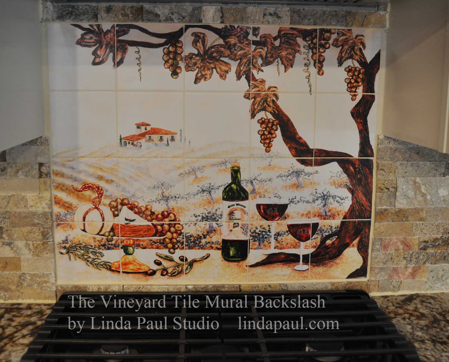The Vineyard Tile Kitchen Backsplash Mural by artist Linda Paul